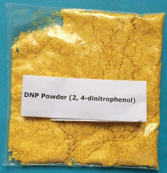 2,4-Dinitrophenol (DNP) is a yellow crystalline powder that has a sweet, musty odour and is soluble in water. The dose of DNP per capsule is 100 or 200 mg. DNP is a weight loss agent with significant acute toxicity. A typical regimen would include starting with one capsule of DNP for the first few days followed by increasing doses to a recommended maximum of 400 mg/day, which is then used for up to 2 weeks in duration.